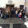 Die Vertreter der Partnerschaftsvereine vor dem Bügerhaus Diedorf. In der zweiten Reihe von rechts: Rudolf Schönle (Partnerschaftsverein Diedorf-Bonchamp), daneben Diedorfs Bürgermeister Peter Högg. In der obersten Reihe (dritter von re.) Landrat Martin Sailer.